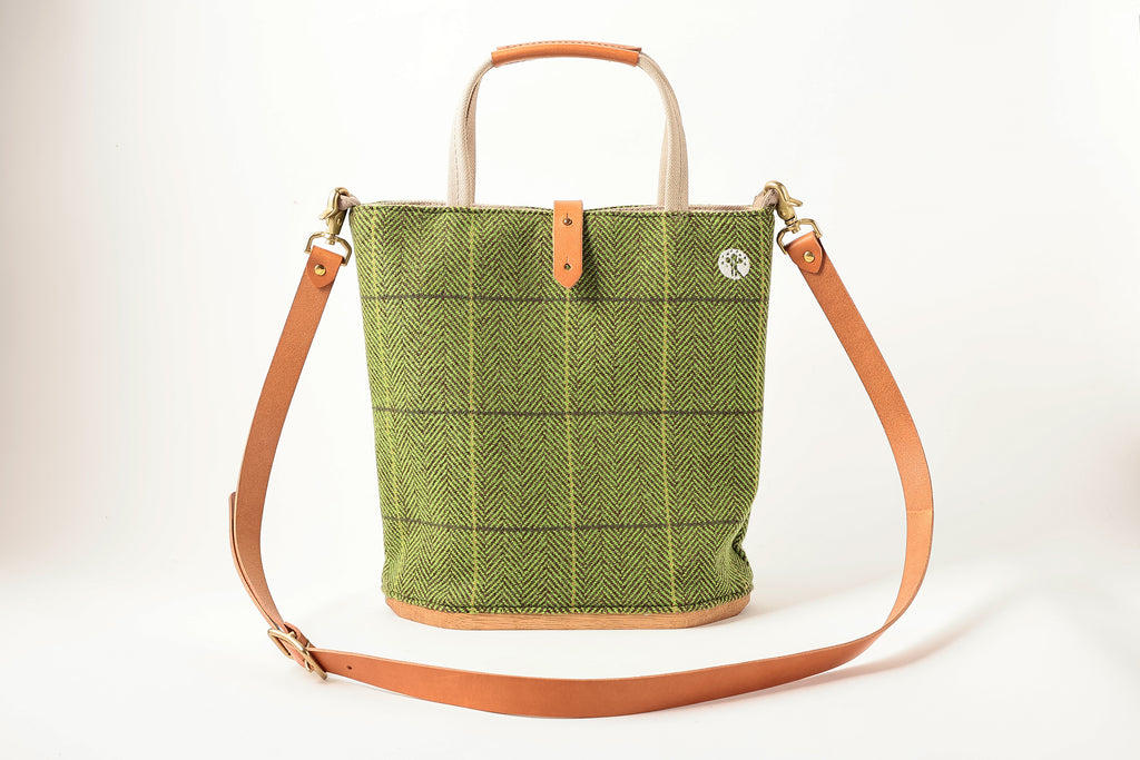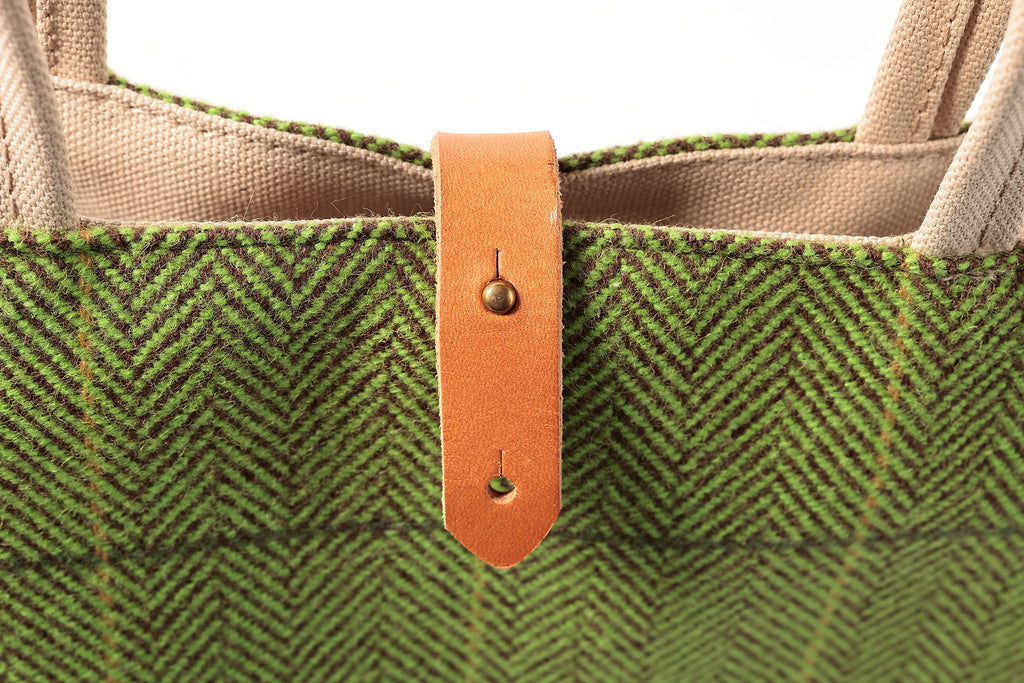 素材:表生地 ウール30%アクリル70%、裏生地持ち手 綿100%、革(イタリアンオイルレザー)、木材(ナラ)、真鍮金具