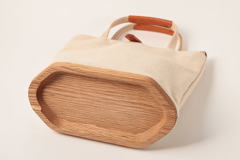 人気の定番、ナラの木と椅子張り生地のバッグが、厚底仕様に進化しました。